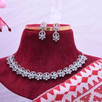 Discover the epitome of elegance with our exquisite American Diamond Necklace Set with Earrings, a stunning addition to our Bollywood Collection. Perfect for any occasion from anniversaries to baby showers, this necklace set epitomizes contemporary glamour with its fusion of crystals and stones. Elevate your look for a night party or an office gathering with this Jewels Premium piece that exudes sophistication and style. Whether it’s a date night or a kitty party, our meticulously crafted necklace sets are sure to make a statement. Explore our Fusion Collection and indulge in the allure of our embellishments, ideal for engagement ceremonies or festive celebrations. Elevate your neck jewellery collection with Saara, where every piece resonates with timeless beauty and unmatched craftsmanship, making it the perfect choice for weddings and special occasions alike.