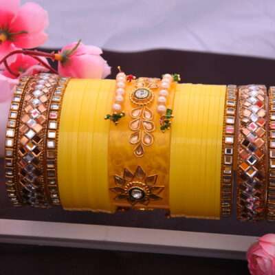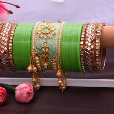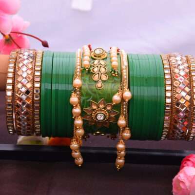 Explore It’sOnly SAARA, your destination for exquisite handcrafted jewelry. Discover our stunning collection of Mirrored Kundan Chuda adorned with intricately placed crystals and pearls, perfect for adding a touch of elegance to any occasion. Our handcrafted chudas blend traditional charm with contemporary flair, making them ideal for both festive celebrations and special occasions like weddings and sangeets. Each piece in our ethnic collection is meticulously crafted with premium materials and embellishments, ensuring timeless beauty and unmatched quality. Elevate your hand jewellery game with our jewels premium line, featuring Kundan and mirrored designs that exude sophistication and style. Discover the perfect accessory to complement your ensemble at It’sOnly SAARA.