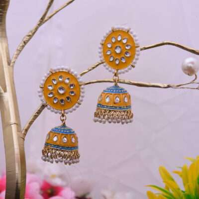 Discover elegance with Itsonly SAARA’s opulent Meenakari & Crystals Jhoomka Earrings, a stunning addition to our extensive range of all jewelry pieces. Delve into our Bollywood Collection for timeless glamour or explore our Contemporary line for modern sophistication. Adorned with intricate embellishments, our earrings blend traditional craftsmanship with contemporary flair, perfect for any ethnic or fusion ensemble. Whether it’s for festive occasions like Haldi/Mehndi or the grandeur of weddings, our Jewels Premium selection featuring pearls, stones, and crystals ensures you stand out with grace and style. Explore Itsonly SAARA for handcrafted treasures that celebrate every occasion with timeless beauty.