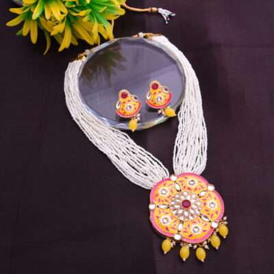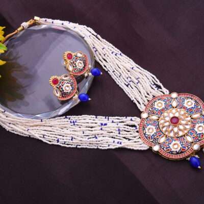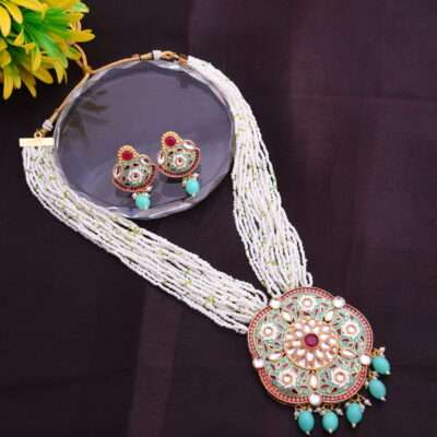 Discover timeless elegance with our Pearl Meenakari Long Necklace Set with Earrings from the Antique Collection at itsonly SAARA. Crafted to perfection, this exquisite piece combines traditional Rajwada craftsmanship with contemporary design, making it perfect for weddings, anniversaries, and festive occasions. Adorned with intricate Meenakari work, pearls, and embellishments, this necklace set exudes sophistication and charm. Whether it’s for engagement ceremonies, Haldi/Mehndi celebrations, or Sangeet nights, our premium quality necklace sets will elevate your ensemble with their exquisite beauty. Explore our exclusive range of ethnic and fusion collections, featuring stunning necklaces, pendant sets, and Ranihaars, meticulously crafted for every special occasion. Shop now and indulge in the splendor of our heritage-inspired jewels, curated just for you.