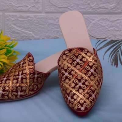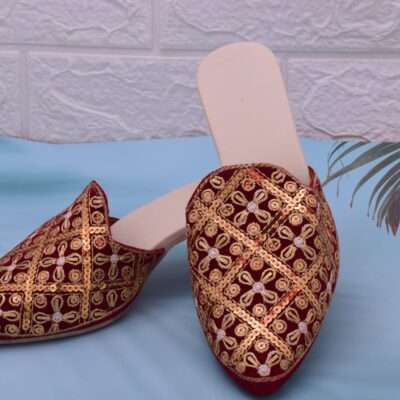 Explore the epitome of luxury and timeless elegance at Itsonly SAARA, your premier destination for exquisite ladies’ footwear. Elevate your ethnic wear ensemble with our Women Embellished Gota Patti Ethnic Mule Heels, designed to add a touch of festivity to any occasion. Crafted from luxurious velvet in glamorous shades of golden and maroon, these slip-on mules feature intricate decorative embellishments and elegant embroidery, embodying the essence of Indian prints and floral motifs. With a pointed toe silhouette and medium sole width, these mules offer both style and comfort, making them an ideal choice for weddings and fancy gatherings. Shop our fancy collection now and indulge in the essence of luxury with Itsonly SAARA.