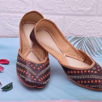 Elevate your ethnic ensemble with our Women’s Embroidery Ethnic Mojari from itsonly SAARA. These intricately crafted mojaris effortlessly blend tradition with contemporary flair, perfect for accessorizing bare essentials or adding a touch of casual elegance to everyday classics. Whether you’re embracing festive vibes or seeking timeless designs for weddings, our slip-on mojaris ensure comfort and style. Made from high-quality leather in shades of brown and golden, these mojaris feature abstract, decorative, and textured patterns with closed toes and flat soles, ideal for business, casual, or evening occasions. Explore our collection of embroidery and leather juttis to find your perfect match and step into ethnic wear sophistication with itsonly SAARA.