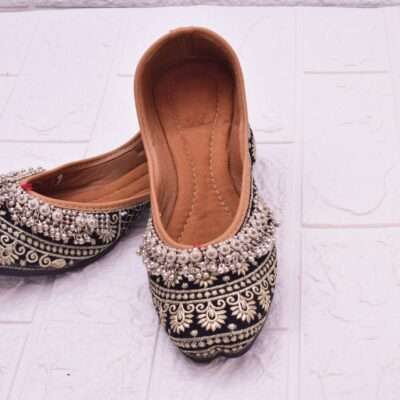 Elevate your ethnic ensemble with our Women’s Embroidery Ghungroo Ethnic Mojari / Jutti Flats from Itsonly SAARA. Delicately crafted with intricate embroidery and adorned with charming ghungroo detailing, these slip-on mojaris epitomize timeless elegance. Perfect for accessorizing your bare essentials or adding a touch of luxury to your festive collection, our mojaris come in versatile black, golden, and silver hues, ensuring they match any outfit effortlessly. Made from sumptuous velvet and featuring decorative patterns inspired by Indian prints, our mojaris exude sophistication and style. Whether you’re attending an evening soirée or celebrating a wedding, these mojaris will complement your ethnic wear flawlessly. Explore our exquisite collection including Dabka work Juttis, Embroidery Juttis, Pakistani Style Juttis, and Punjabi Juttis, and step into a world of ethnic charm with Itsonly SAARA.