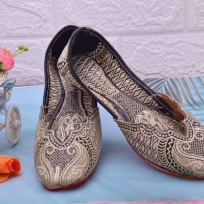Elevate your ethnic ensemble with the exquisite Women’s Embroidery Zari Ethnic Mojari / Jutti Flats from Itsonly SAARA. Our fancy collection brings forth festive vibes and timeless designs, perfect for accessorizing your wedding or evening attire. Crafted with luxurious leather, these slip-ons offer both style and comfort, featuring decorative embroidery, Indian prints, and textured patterns. With a closed toe and flat sole width, these mojaris / juttis ensure a snug fit for every step. Choose from a variety of colors including black and golden to match your ensemble flawlessly. Explore our collection of dabka work, embroidery, leather, Pakistani, Punjabi, and zari juttis, ideal for any ethnic wear occasion. Shop now and step into luxury with Itsonly SAARA.