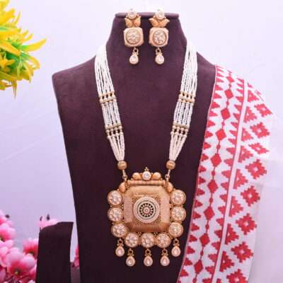 Meenakari Polki Stones Long Necklace Set with Earrings